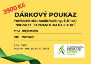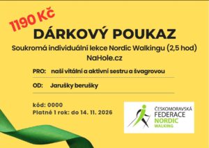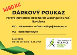 Věnujte dárkový voucher na Nordic Walking svým přátelům, kolegům nebo rodině. Ať už někdo potřebuje pohyb jako sůl, nebo se nemůže rozhodnout, zda se přihlásit do kurzu, tento voucher je ideálním dárkem – pro jednotlivce, páry nebo celé rodiny.